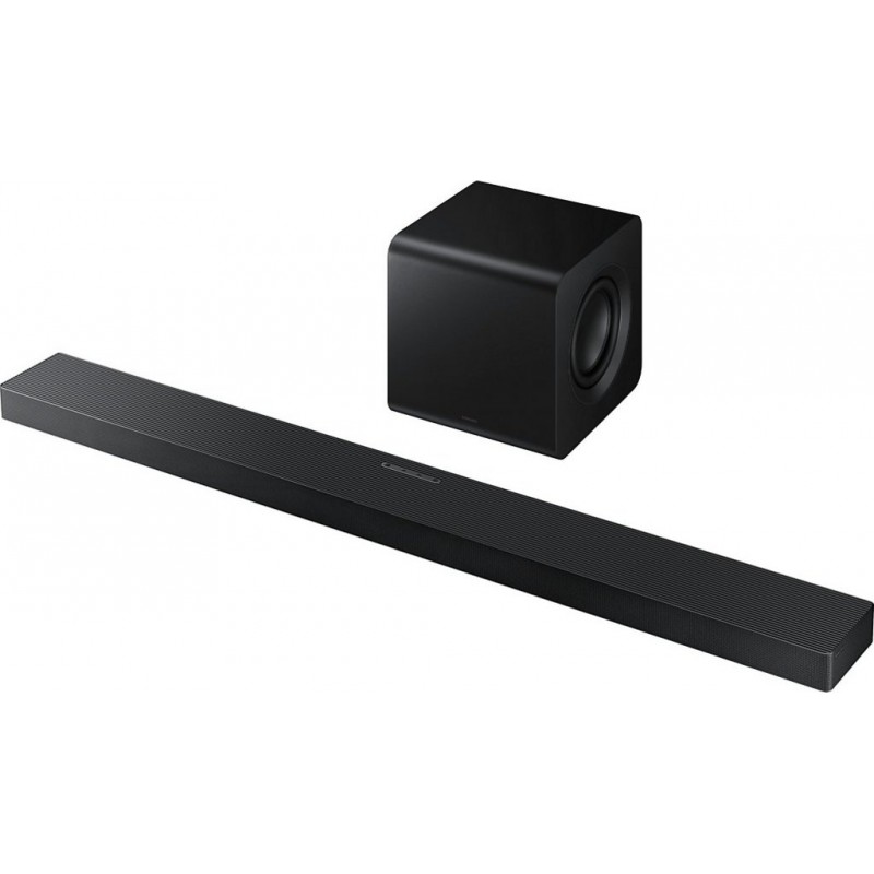 Barre de son SAMSUNG HW-QS710F: Une expérience sonore immersive Technologie sonore avancée et connectivité La barre de son Samsung HW-QS710F, avec ses 3.1.2 canaux, offre une immersion sonore exceptionnelle grâce à ses 8 haut-parleurs intégrés, incluant un haut-parleur central et des haut-parleurs verticaux. Profitez d&-39 un son surround 3D sans fil avec Dolby Atmos, optimisé par la technologie SpaceFit Sound Pro qui adapte le son à votre espace intérieur. Cette barre de son est également équipée de la technologie Q-Symphony, permettant une synchronisation parfaite avec les téléviseurs Samsung compatibles pour une expérience sonore à 360°. La connectivité est au rendez-vous avec le Bluetooth 5.3, le Wi-Fi, ainsi que les intégrations Chromecast et Airplay 2, facilitant le partage de vos musiques préférées avec une qualité sonore optimale. Design flexible et fonctionnalités intelligentes Le design convertible de la barre de son HW-QS710F s&-39 adapte à votre intérieur, que vous choisissiez de la fixer au mur ou de la poser sur un meuble. Son caisson de basse sans fil compact offre une puissance sonore impressionnante, tout en s&-39 intégrant discrètement dans votre espace. La barre de son est équipée d&-39 une télécommande unique, simplifiant le contrôle de vos appareils. Grâce à l&-39 Intelligence Artificielle intégrée, profitez de fonctionnalités avancées telles que le mode Adaptive Sound, qui ajuste automatiquement le son en fonction du contenu visionné. Avec la compatibilité HDMI eARC et HDR 10 , cette barre de son assure une transmission audio de haute qualité, idéale pour les amateurs de cinéma à domicile. Produit neuf dans son emballage d'origine bénéficiant de la garantie originale du fabricant. EAN 8806097090175.