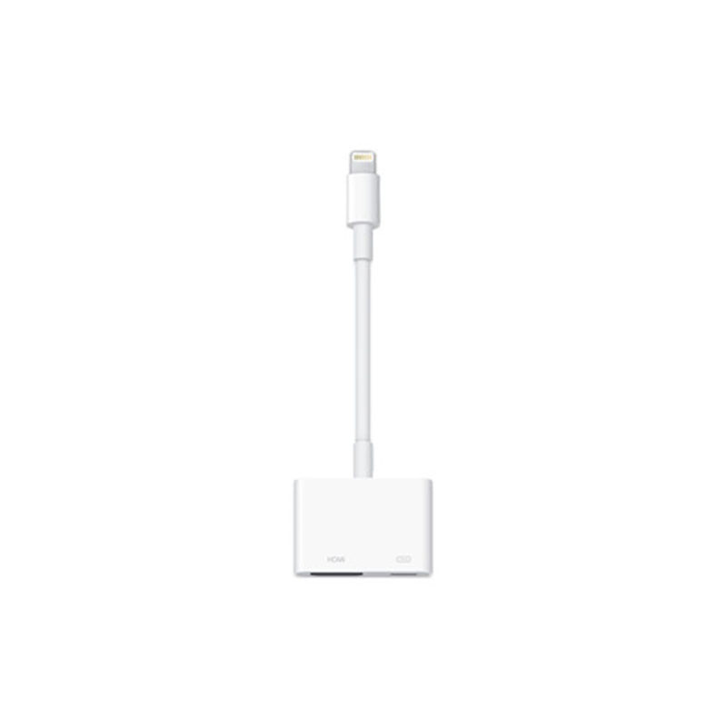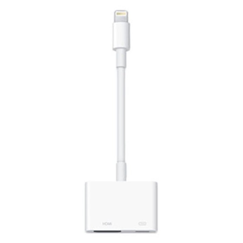 Adaptateur lightning vers HDMI AV Numérique [référence Apple MD826]. Utilisez l'Adaptateur Lightning AV numérique avec vos iPad avec écran Retina, iPad mini, iPhoneš5 et iPod touch (5ešgénération) à connecteur Lightning. L'Adaptateur Lightning AV numérique permet la recopie vidéo de ce qui s'affiche sur l'écran de votre appareil – y compris apps, présentations, sites web, diaporamas et autres – sur votre téléviseur, projecteur ou tout autre écran compatible équipé d'un port HDMI, jusqu'en HD 1080p. Il vous permet également de diffuser du contenu vidéo – films, sériesšTV, vidéos personnelles – sur votre grand écran jusqu'en HD 1080p. Il vous suffit de relier votre Adaptateur Lightning AV numérique au connecteur Lightning de votre appareil et à votre téléviseur ou projecteur via un câble HDMI (vendu séparément). Compatibilité : iPod touch 5ème et 6ème génération iPad Air et modèles ultérieurs, Mini, Pro iPhone 5 et modèles ultérieurs (matériel neuf, garantie totale 3 ans). EAN 0885909627653.