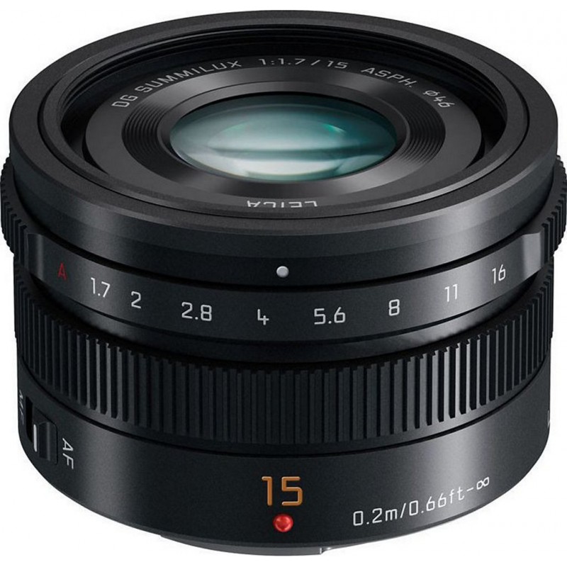 L&-39 objectif LEICA DG SUMMILUX 15 mm / F1.7 ASPH. vous permet de capturer de remarquables clichés avec de superbes flous créés par le F1.7 à haute vitesse. La qualité d&-39 image exceptionnelle est certifiée par la marque LEICA, réputée aux quatre coins du monde. Le nouveau système d&-39 objectif comprend 9 éléments dans 7 groupes et s&-39 appuie sur 3 objectifs asphériques. Les objectifs asphériques suppriment efficacement l&-39 aberration sphérique et la distorsion tout en réduisant la taille de l&-39 objectif. Mise au point à haute vitesse et à haute précision L&-39 inclusion du moteur pas à pas exclusif permet de réaliser une mise au point fluide et silencieuse, tant pour capturer des photos que des vidéos. Ainsi, on peut constater que les performances de la mise au point automatique sont nettement supérieures à celles de la mise au point automatique à différence de phase, qui implique un objectif rapide et une valeur F plus réduite. Lorsque vous le fixez sur un appareil photo de la série LUMIX G, vous pourrez profiter d&-39 un système de mise au point automatique par détection de contraste ultra-rapide et de haute précision. Bague de réglage de l&-39 ouverture / Design à finition métallique Le modèle LEICA DG SUMMILUX 15 mm / F1.7 ASPH. est équipé d&-39 une bague de réglage de l&-39 ouverture et d&-39 un commutateur de mise au point automatique / manuelle vous offrant un fonctionnement direct et intuitif. Le design métallique sophistiqué de l&-39 objectif LEICA DG SUMMILUX 15 mm / F1.7 ASPH, qui s&-39 applique même au cache-soleil, mérite de porter la prestigieuse appellation LEICA. En outre, la fixation métallique on ne peut plus fiable est suffisamment solide pour changer d&-39 objectif autant de fois que vous le souhaitez. Nano Surface Coating Grâce à la technologie Nano Surface Coating de Panasonic, la réflexion est réduite au minimum de manière spectaculaire sur l&-39 ensemble de la plage de lumière visuelle (380 à 780 nm) en appliquant à la surface de l&-39 objectif un revêtement à indice de réfraction extrêmement faible avec nano-structure L&-39 image ainsi obtenue est parfaitement claire et présente une impressionnante réduction des reflets et des images fantômes. Produit neuf dans son emballage d'origine bénéficiant de la garantie originale du fabricant. EAN 5025232916092.