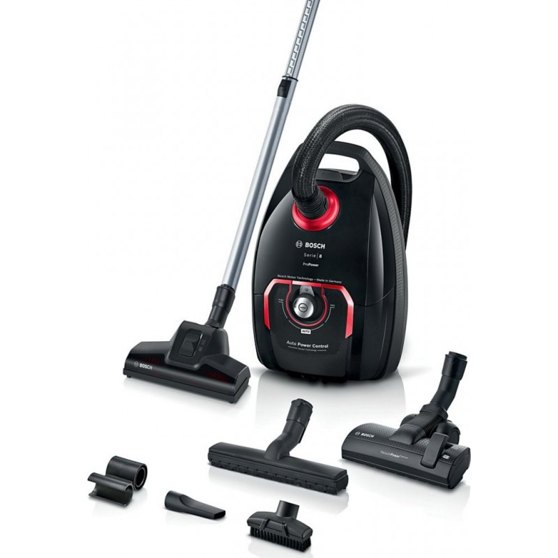 Aspirateur avec sac BOSCH ProPower GL80 Serie 8 Noir Performance d&-39 aspiration inégalée L&-39 aspirateur BOSCH ProPower GL80 Serie 8 Noir est conçu pour offrir une performance d&-39 aspiration exceptionnelle grâce à sa Turbobrosse innovante. Doté d&-39 un moteur puissant garanti 10 ans, cet appareil assure une haute performance d&-39 aspiration sur tous types de sols. Le système &-39 Power Protect&-39 garantit des performances de nettoyage durables, même lorsque le sac se remplit, réduisant ainsi la fréquence de remplacement des sacs. Avec un taux de dépoussiérage de 99,9%, il est idéal pour maintenir un intérieur impeccable. De plus, le régulateur automatique de puissance optimise l&-39 aspiration en fonction du type de sol, assurant une efficacité maximale à chaque passage. Confort et hygiène au quotidien Conçu pour un usage pratique, l&-39 aspirateur BOSCH ProPower GL80 Serie 8 offre un confort d&-39 utilisation remarquable. Son rayon d&-39 action de 15 mètres permet de nettoyer de grandes surfaces sans avoir à changer de prise, tandis que l&-39 enrouleur automatique de cordon simplifie le rangement. Le filtre hygiénique HEPA lavable est particulièrement recommandé pour les personnes souffrant d&-39 allergies, garantissant un air sain sans frais supplémentaires. Avec ses accessoires polyvalents, tels que la brosse universelle double position et le suceur ameublement, cet aspirateur s&-39 adapte à toutes les situations. Sa poignée ergonomique et ses roulettes multidirectionnelles assurent une maniabilité optimale, rendant le nettoyage plus agréable et moins fatigant. Produit neuf dans son emballage d'origine bénéficiant de la garantie originale du fabricant. EAN 4242005498796.