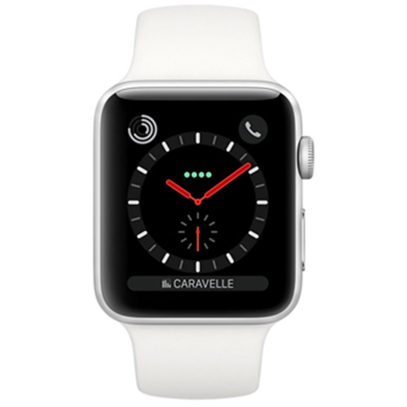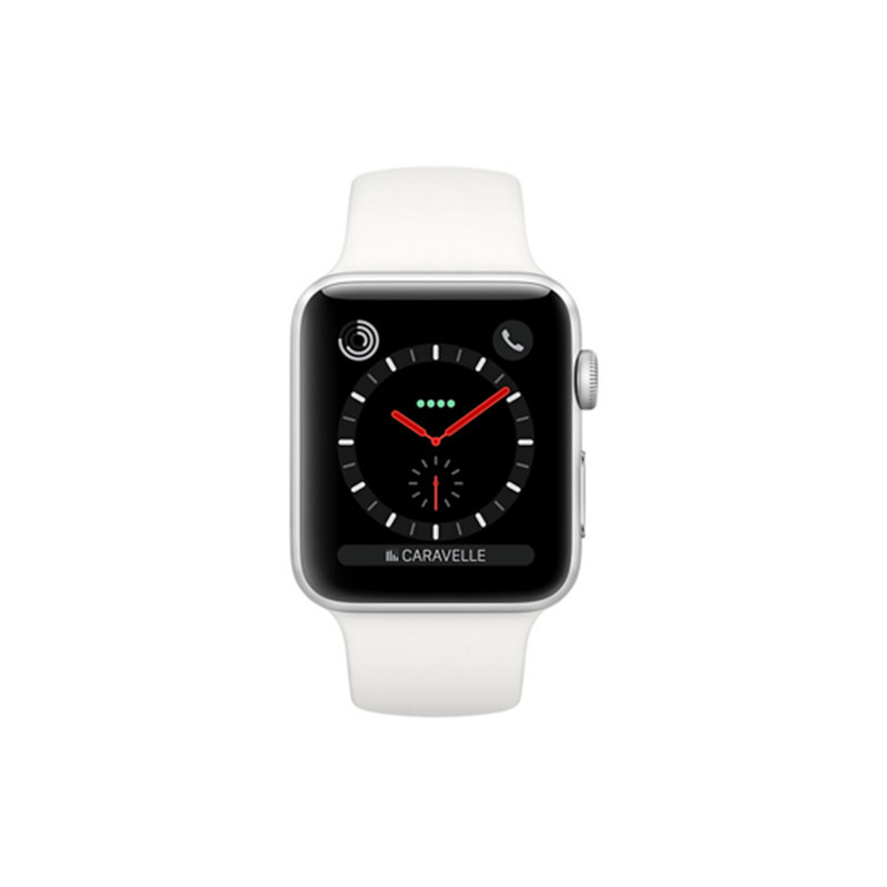 Apple Watch Series 3 boîtier en acier de 38mm avec Bracelet Sport blanc coton Cellular [référence Apple MQLV2]. [late 2017] [système watchOS 4] Répondez à un appel depuis n'importe quelle situation. Demandez à Siri d'envoyer un message ou courez au son de vos playlists préférées. Tout ça, sans votre téléphone. Ces fonctionnalités sont rendues possibles grâce à la connectivité cellulaire. Boîtier acier inoxydable GPS et GLONASS intégrés Puce W2 Altimètre barométrique Cardiofréquencemètre Accéléromètre et gyroscope Etanche jusqu'à 50 mètres Cristal de Saphir Dos en céramique Wi-Fi (802.11b/g/n 2,4 GHz) Bluetooth 4.2 Jusqu'à 18 heures d'autonomie watchOS 4 (adaptateur secteur non inclus, vendu séparément) (matériel neuf, garantie totale 3 ans). EAN 0190198515377.