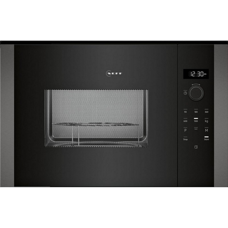 Micro-ondes Grill Encastrable NEFF HLAGD53G0: Performance et Élégance Technologie Avancée et Design Élégant Le micro-ondes grill encastrable NEFF HLAGD53G0, de la gamme N 50, se distingue par sa technologie de pointe et son design moderne en graphite-grey. Conçu pour s&-39 intégrer parfaitement dans un meuble de 38cm, il offre une puissance maximale de 900W, avec 5 niveaux de puissance allant de 90W à 900W. Sa fonction gril de 1,2 kW permet de combiner les modes de cuisson pour des résultats optimaux. L&-39 intérieur en inox de 25 litres assure une durabilité et un entretien simplifié grâce à un nettoyage par hydrolyse manuel. Son écran LED et ses touches sensitives garantissent une utilisation intuitive et rapide, tandis que l&-39 ouverture latérale et électronique de la porte offre une flexibilité d&-39 installation. Fonctionnalités et Confort d&-39 Utilisation Le NEFF HLAGD53G0 est équipé de 8 programmes automatiques, incluant 4 pour la décongélation et 3 pour la cuisson micro-ondes, ainsi qu&-39 un programme combiné. Sa fonction mémoire permet de sauvegarder vos réglages préférés pour une utilisation simplifiée. Le plateau tournant en verre de 31,5cm assure une cuisson homogène de vos plats. Pour plus de sécurité, ce micro-ondes dispose d&-39 une coupure automatique et d&-39 un interrupteur au contact de la porte. Avec un poids net de 18,3Kg et des dimensions de 38,2x59,4x38,8cm, il est conçu pour s&-39 intégrer harmonieusement dans votre cuisine. Enfin, son ventilateur de refroidissement garantit une utilisation en toute sécurité. Produit neuf dans son emballage d'origine bénéficiant de la garantie originale du fabricant. EAN 4242004262817.